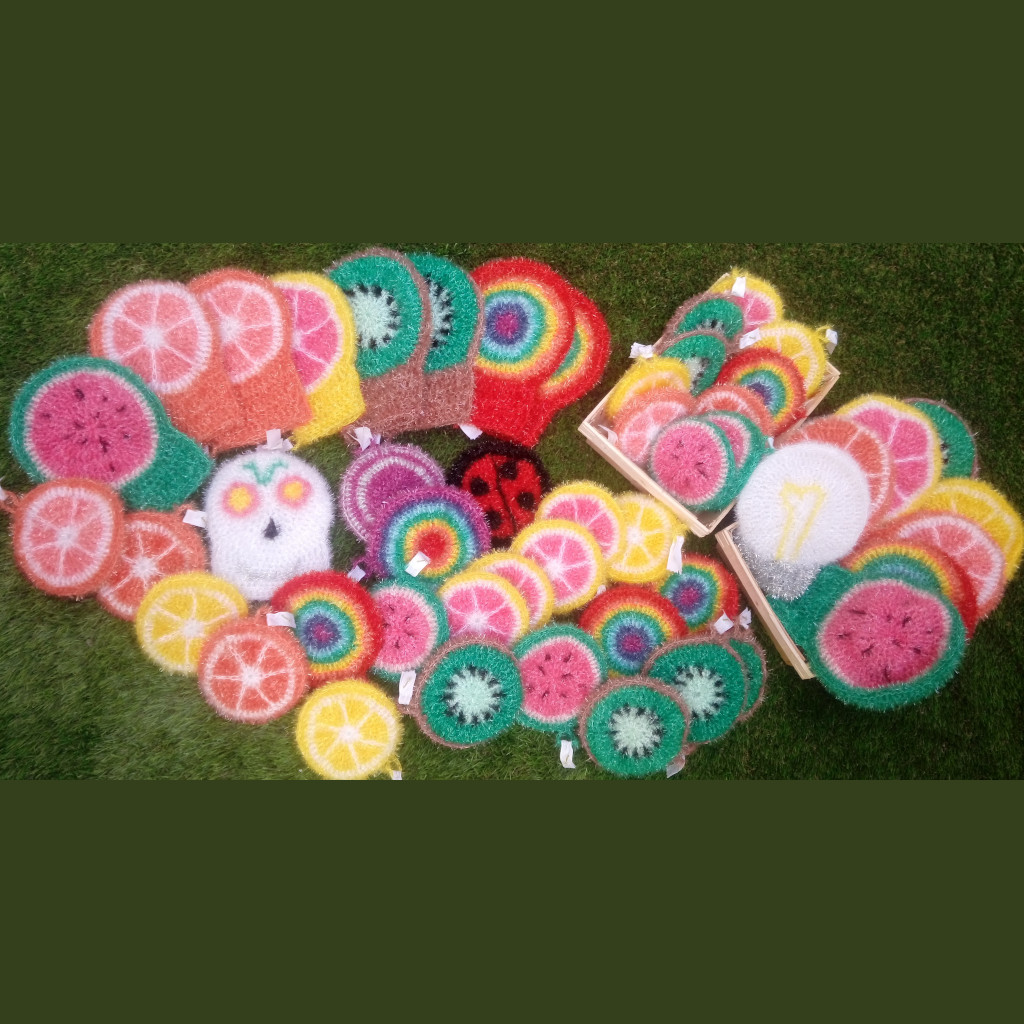 Généreuse, notre Pimprenelle offre aussi son savoir avec des petits kits pour crocheter soi-même son insolite matière …