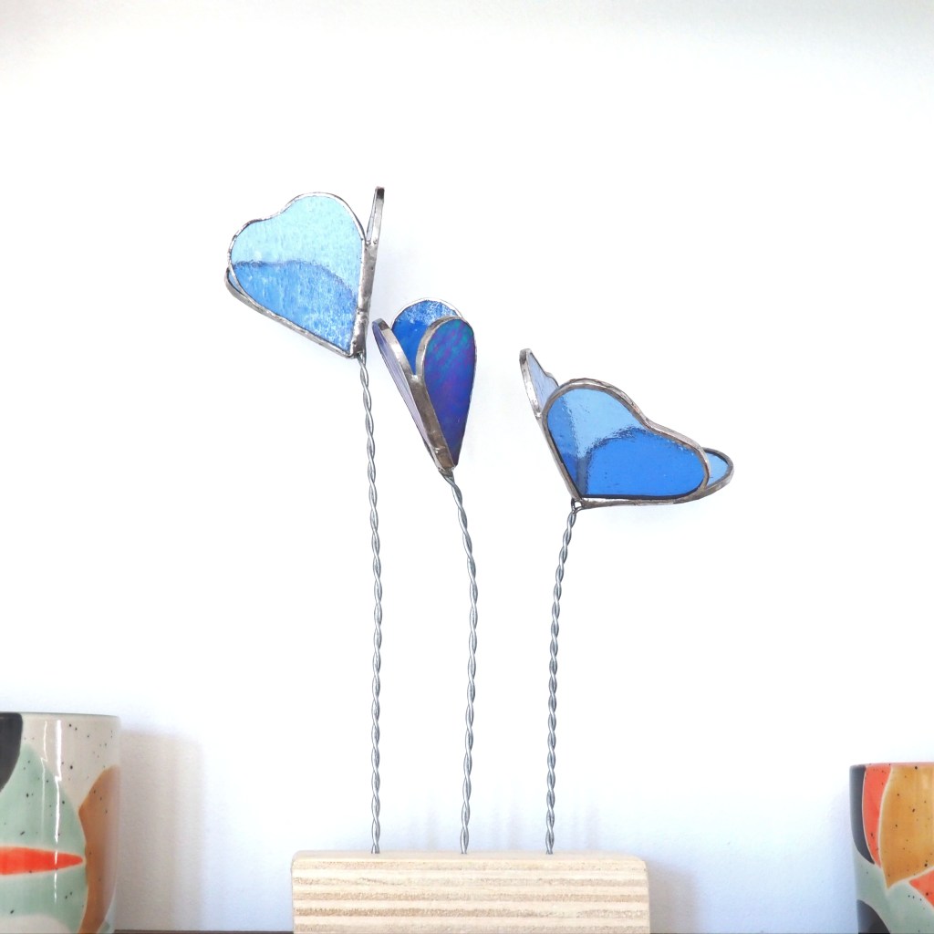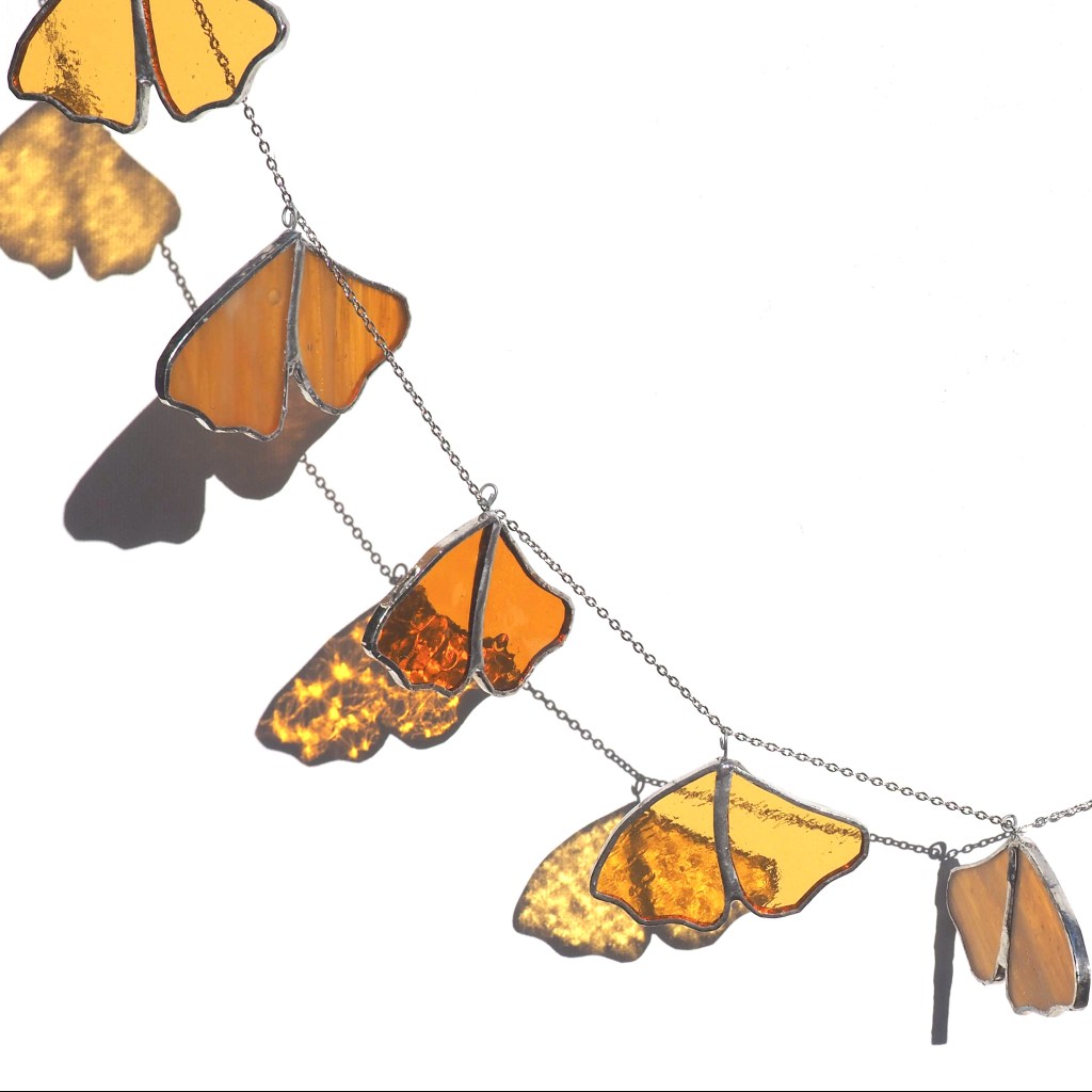Depuis, elle crée des suspensions et guirlandes, des photophores et même des bouquets de fleurs de verre. Ce sont des pièces légères qui ajoutent une touche de poésie et de couleurs aux fenêtres lyonnaises !