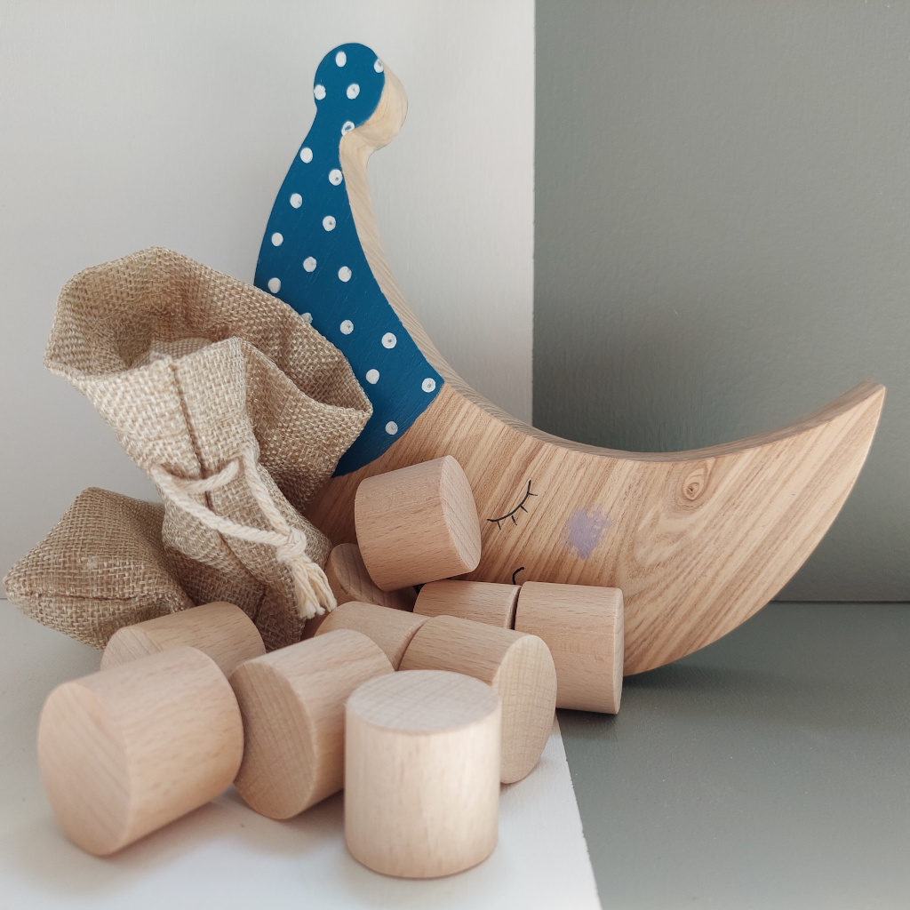 Elle utilise du bois français local non traité et ses peintures et vernis sont à la norme jouet N71.3.