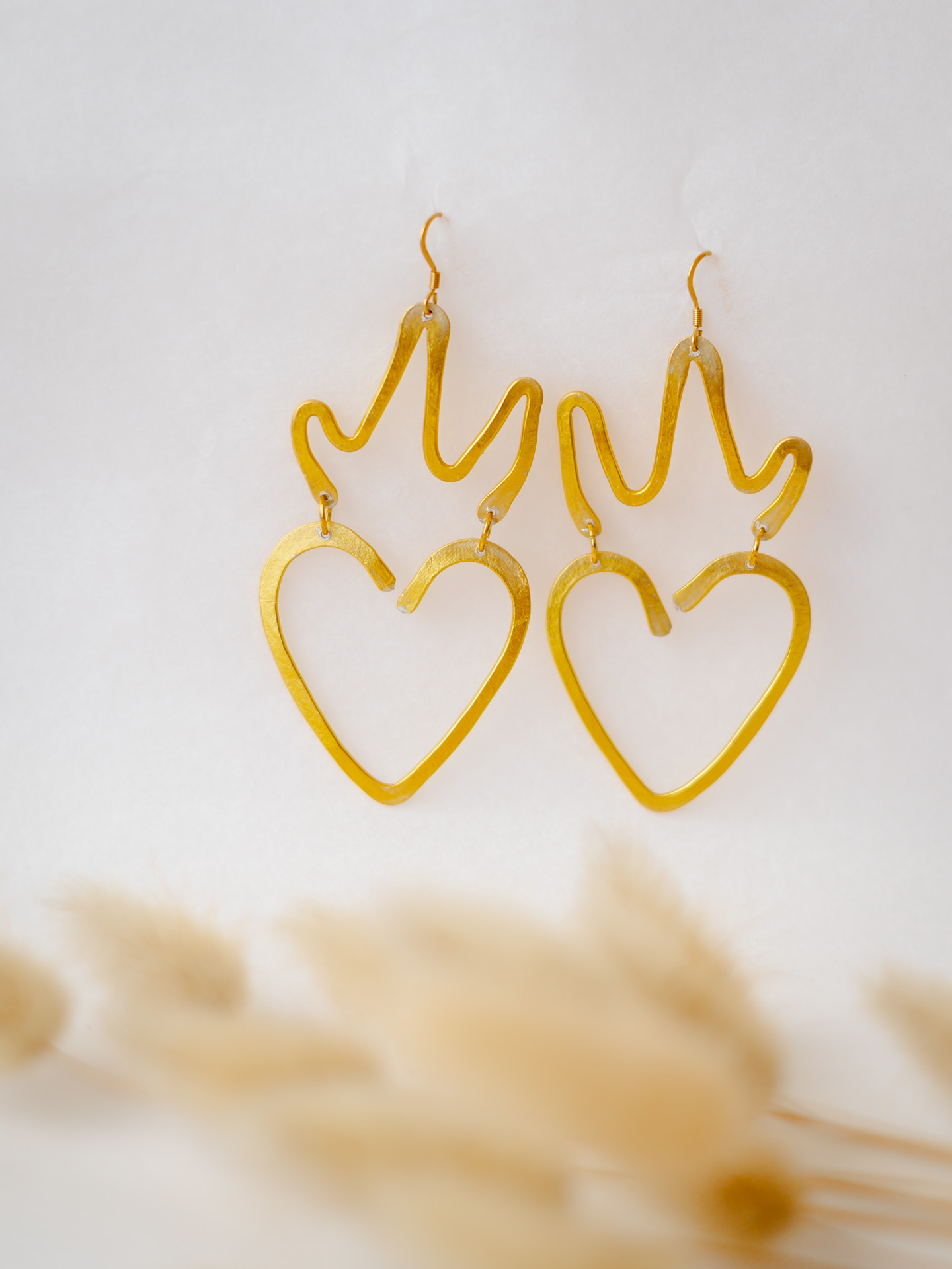 Un travail à la plaque qu’elle découpe, martèle, tord, oxyde pour souligner les imperfections et les accidents dans le métal. Un travail à la cire perdue, matière qu’elle sculpte au gré d’inspirations végétales, littéraires, philosophiques, etc. Chaque pièce est fondue en argent 925 ou laiton (plaqué or ou pas) pour donner un bijou unique à chaque fois.
