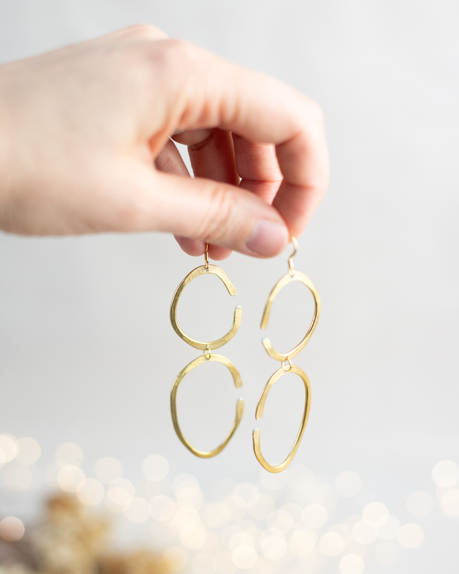 Ces boucles d’oreilles en aluminium sont formées et martelées à la main dans un petit atelier lyonnais.
