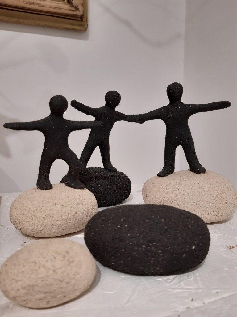 Forte de toute cette expérience, elle travaille aujourd’hui le grès noir ou blanc, plus ou moins chamotté pour retrouver à travers ses différentes sculptures la terre en tant que matière, sans couverte de finition, pour mieux en dévoiler le grain, les volumes, la lumière et donner vie à des sculptures résolument plus brutes et authentiques.