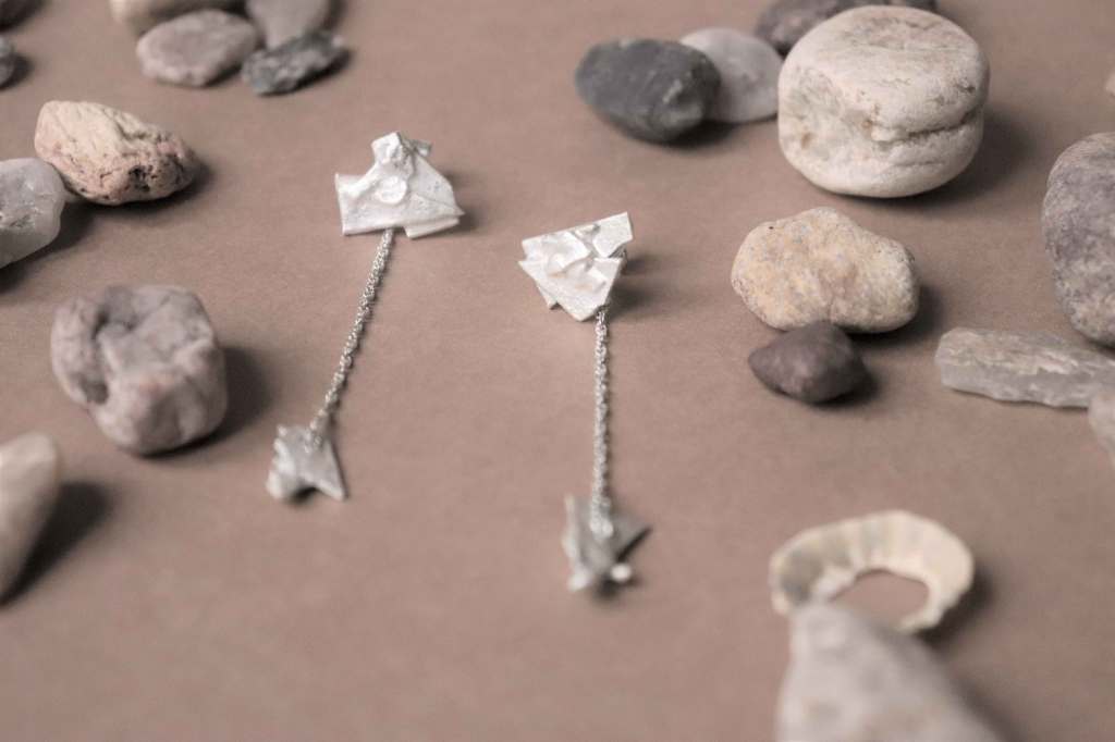 Son travail est très intuitif. Elle aime les formes et les mouvements accidentés, les chocs dans la matière qui donnent une esthétique singulière. Elle réalise des très petites séries et des pièces uniques pour que chaque personne rencontre son bijou.