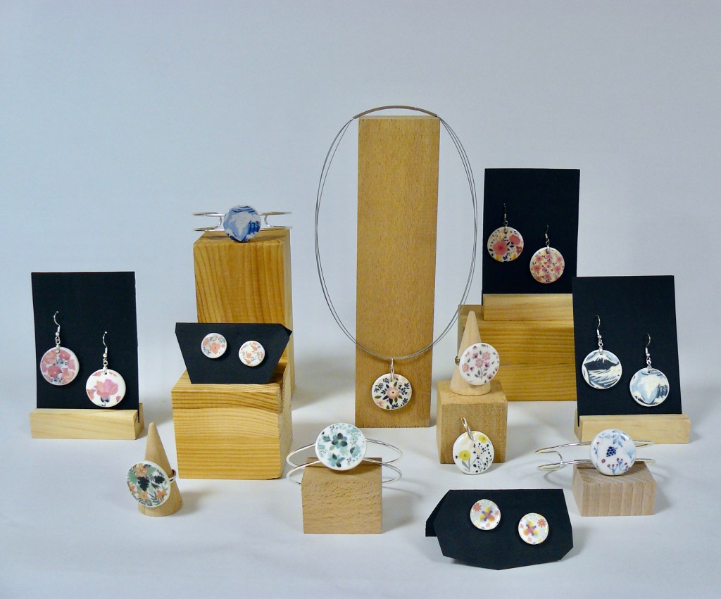 Les motifs inspirés de la nature, japonisant ou encore féministe ornent la porcelaine et se déclinent en différentes gammes et produits. Bracelet, boucles d’oreilles, pendentif, bague se parent de motifs Or, Noir&Blanc, Coloré pour s’assortir à chacune et en toute occasion.