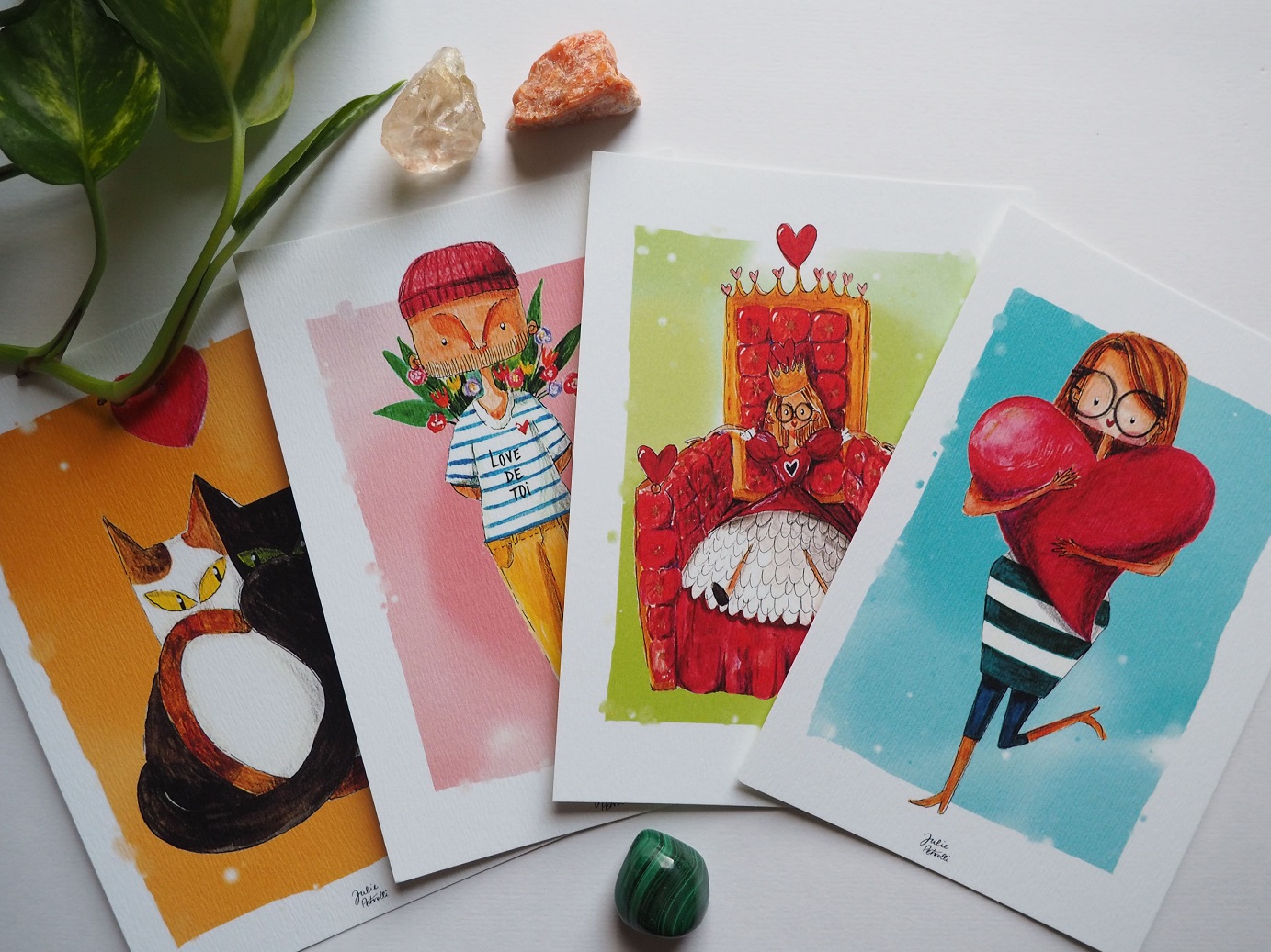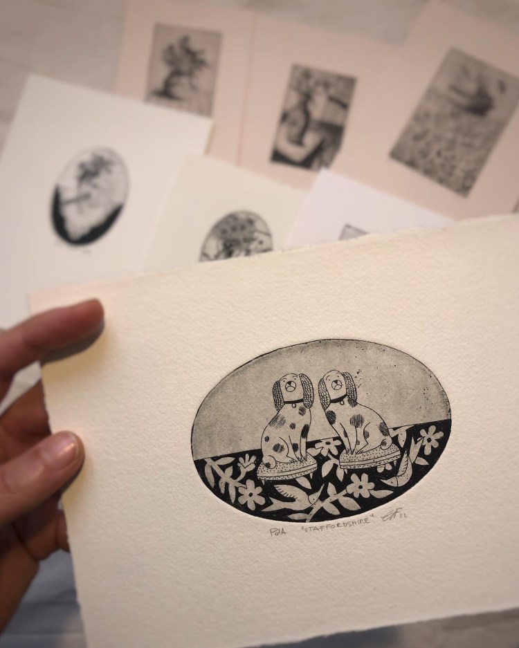 Guilia réalise des llustrations principalement avec les techniques de la gravure à l’eau-forte et sur TETRAPAK dans son petit atelier nichée sur la colline à St Just. Ce sont des gravures originales, principalement sur le thème des natures mortes. Les matrices sont gravées manuellement et les impressions sont faites à la main à l’aide d’une presse pour taille douce.