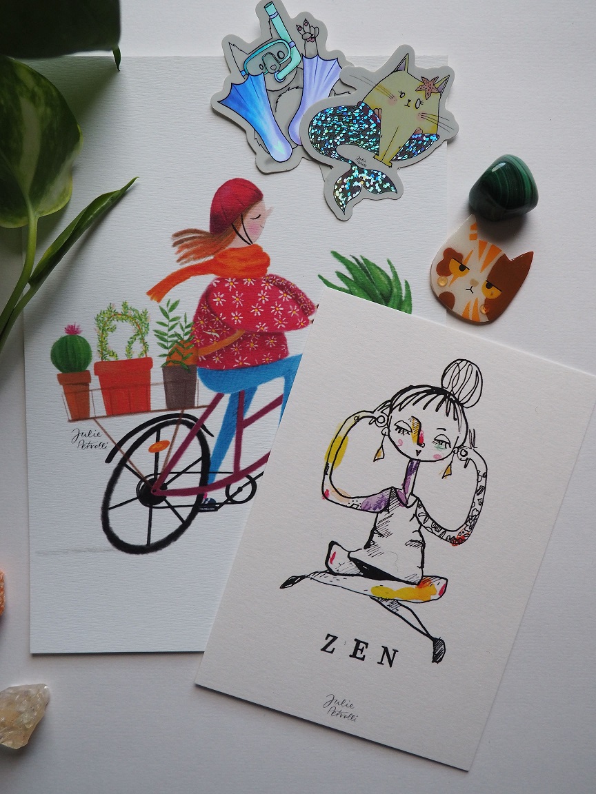 Depuis toujours je me déplace avec un carnet et une multitude de crayons en tout genre. J’utilise majoritairement la peinture aquarelle pour sa transparence et ses tonalités mais j’aime la mixer avec d’autre techniques, tels que les feutres, les crayons, la gouache, le collage…
