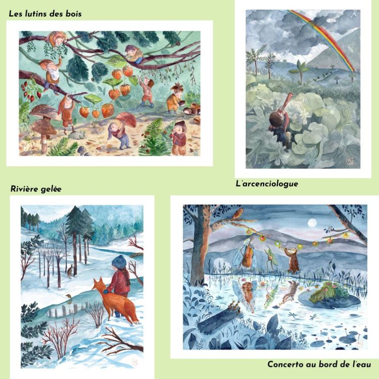 Illustratrice, Alexandra Jacquin travaille principalement à l’aquarelle. Elle aime représenter l’enfance, les animaux et les petits personnages de la forêt pour créer des illustrations qui racontent des histoires. Après avoir été pharmacienne, elle choisit le chemin de l’illustration en s’installant dans le Vercors.