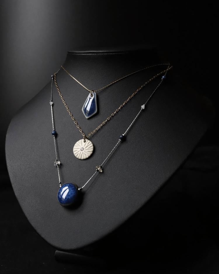 Emma fabrique des bijoux en grès et porcelaine. Du façonnage de l’argile au montage des bijoux, elle passe par de nombreuses étapes : les finitions, la conception d’émaux, des tests et expérimentations, une première cuisson, l’émaillage puis une dernière cuisson à 1280°C. Cette dernière cuisson à haute température permet à la terre elle-même de se vitrifier : c’est ce qui va apporter solidité et durabilité à la pièce. L’ouverture du four est une surprise. Elle découvre le résultat final après toute ces étapes. Elle peut maintenant passer au montage et transformer les pièces céramiques en bijoux !
