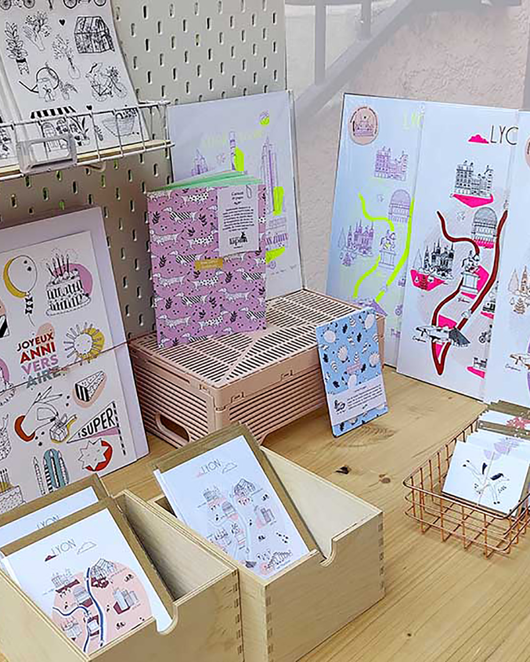 We are lapin c’est deux sœurs qui dessinent et proposent à la vente des articles de papeterie. Carnets, cartes postales, affiches, tout est dessiné à Lyon dans leur atelier du 7ème arrondissement, puis imprimé par des imprimeurs Lyonnais. Pour leurs éditions limitées, elles impriment elles-mêmes avec la technique de la sérigraphie. Elles proposent aussi des ateliers d’initiation pour découvrir cette belle technique d’impression artisanale, toujours dans le 7ème.